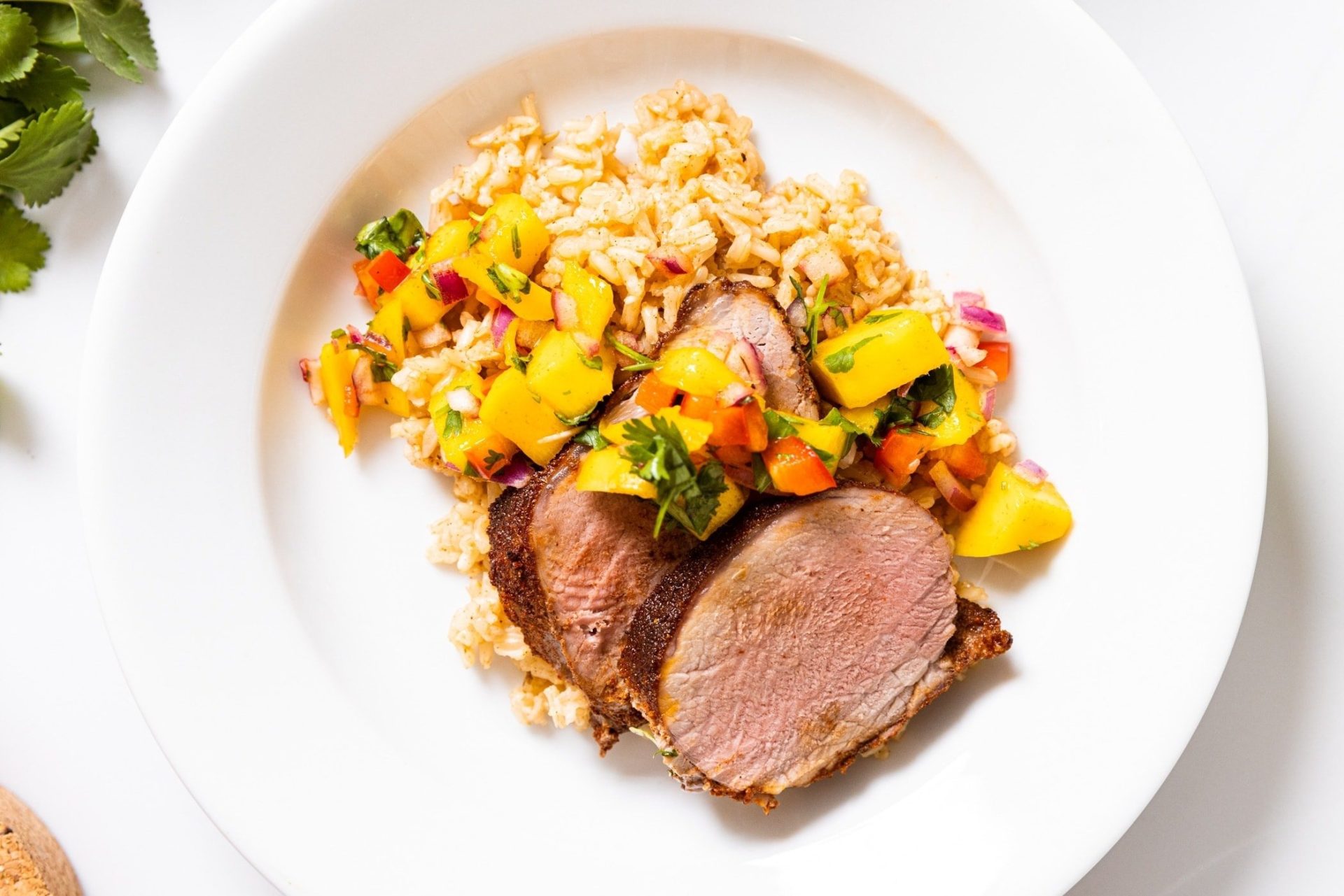 - Slice the roasted pork tenderloin and serve it over the pineapple rice salad.