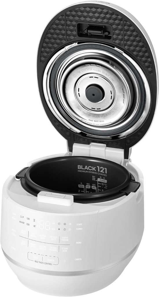 | ✔️ 10-cup capacity ✔️ Ultra-high heat pressure cooking ✔️ Thermo Guard Technology ✔️ Black121 with Dyking coating inner pot ✔️ More than 10 cooking presets ✔️ Stainless steel power lock ✔️ Easy-to-read touch buttons ✔️ Voice navigation in 3 languages | ✖️ Expensive ✖️ Large and heavy |