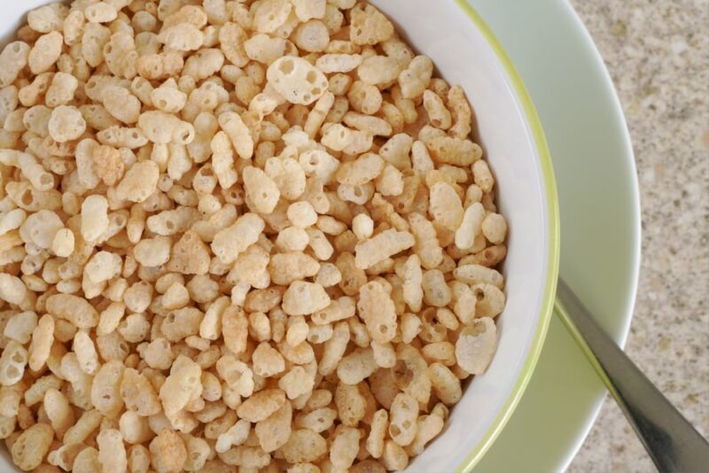 Rice Krispies cereal is made of puffed rice mixed with malt flavoring made of sugar, salt, and malt extract dissolved water. The rice is then cooked at a super high temperature until it pops like popcorn.