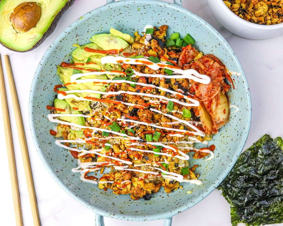 Salmon Rice Bowls have such great flavor and contain amazing health benefits too! Many Salmon Rice Bowl recipes use white rice but using brown rice will increase the nutrients of this dish. One bowl with brown rice and avocado will give you about 6 grams of fiber. Cooked salmon gives you about 25 grams of protein, 2.2 grams of omega 3, and more than a day’s worth of vitamin B12 according to the USDA.