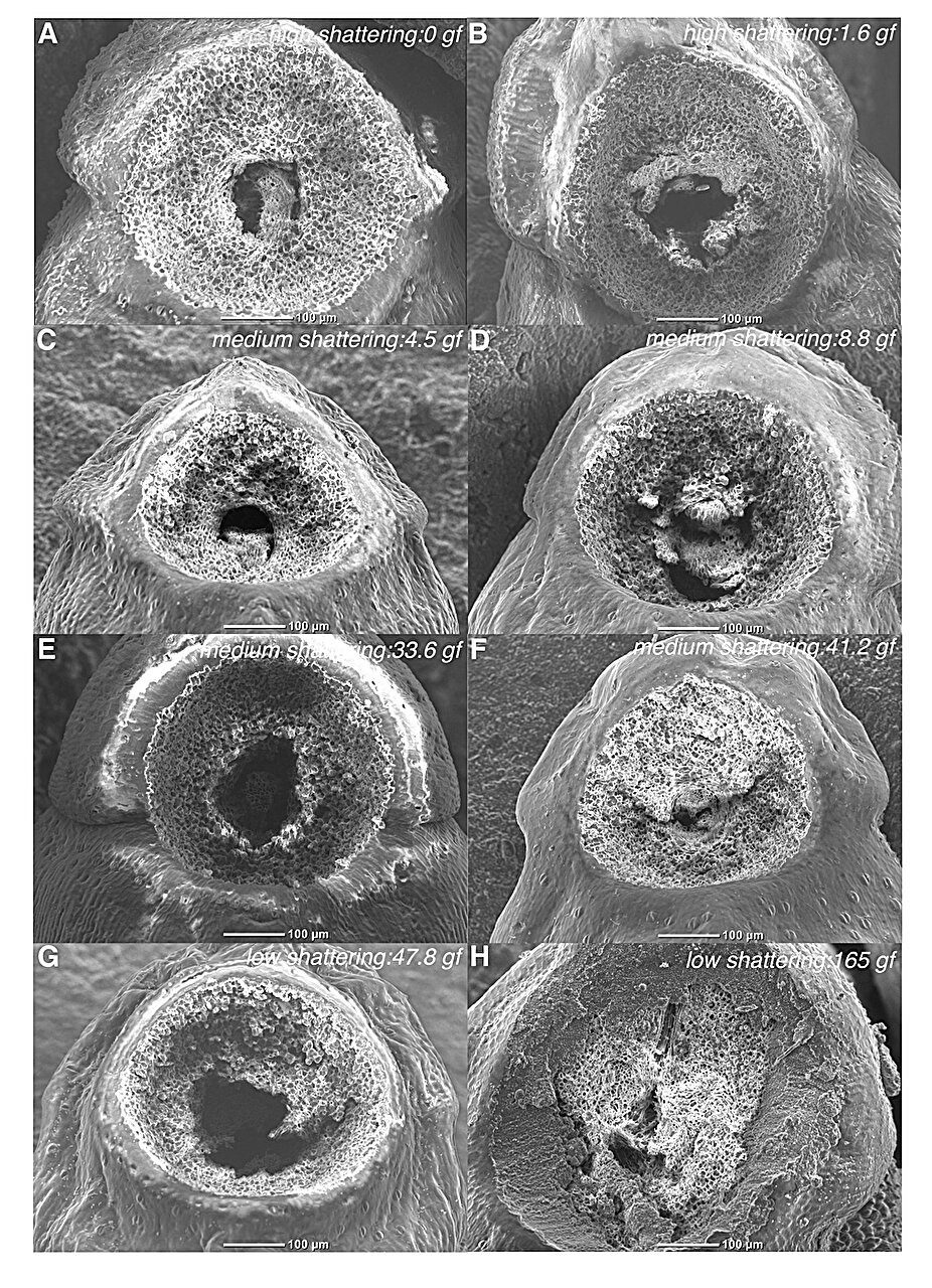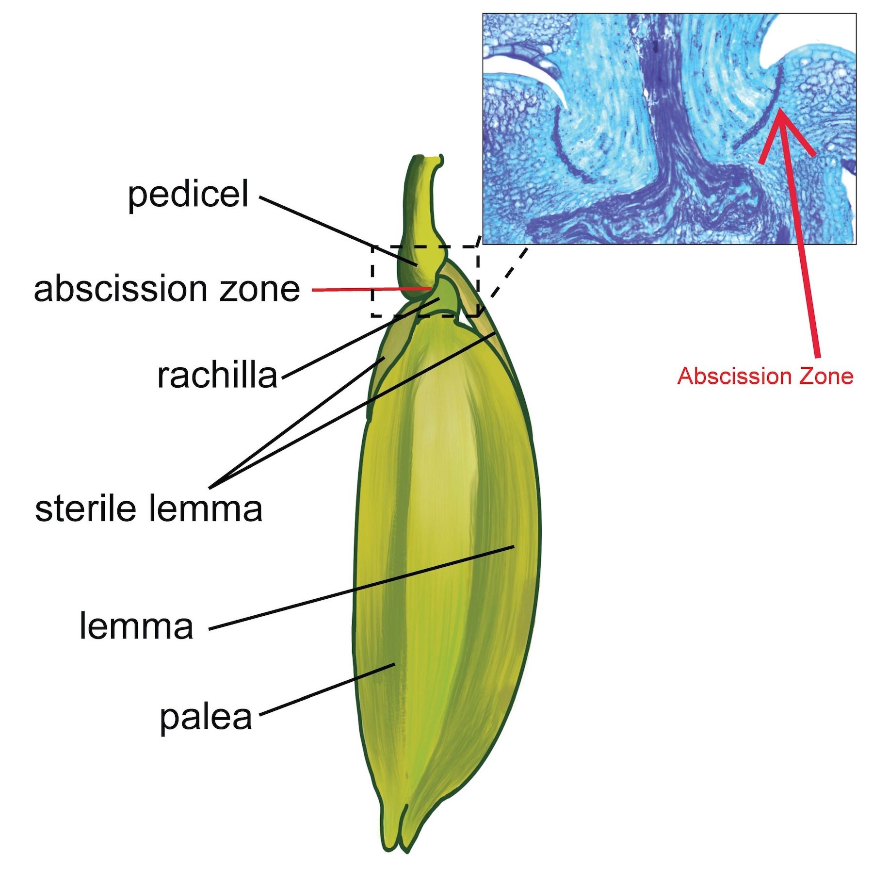 The team also discovered that the length of the abscission zone, not just its presence, best predicted which varieties shatter easily. All cultivated groups varied in abscission zone length but all weedy varieties converged on a longer zone.
